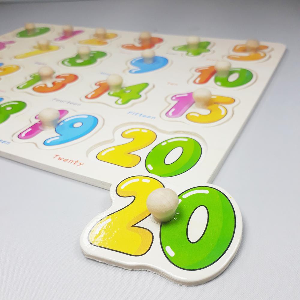 Bảng học có Núm giáo dục sớm cho bé làm quen Tiếng Anh, Chữ cái, Chữ số,... theo phương pháp Motessori dành cho trẻ từ 3 tuổi - vào lớp 1 hoặc bắt đầu làm quen Tiếng Anh. ☘Lưu ý: Shop bán loại bảng có Núm loại cao cấp, chứ không phải loại không núm giá Rẻ. ☘Khách hàng nên mua trọn Bộ nhiều chủ đề để Giáo dục trẻ đạt hiệu quả cao nhất. Phân loại mẫu theo chủ đề (Có Tiếng Anh minh họa): Rau Củ / Côn Trùng / Trái Cây / Phương Tiện Giao Thông/Phép tính/Chữ cái Tiếng Việt/Chữ số. ☘Thông số Bảng học có Núm giáo dục sớm -Độ tuổi phù hợp: trẻ từ 3 tuổi trở lên. -Bảng gồm các mảnh có núm dễ cầm, có hình và các phần chữ Tiếng Anh tương ứng, trẻ sẽ học theo hình thức chơi ghép vào phần khuyết trên bảng. -Kích thước: 30 x 23 x 0,5cm. -Chất liệu: Gỗ thông an toàn, màu in sinh động. -Thiết kế: Dạng bảng gỗ thông mỏng, các số là các miếng gỗ sơn màu; Chất liệu gỗ thông đảm bảo tiêu chuẩn an toàn, các viền cạnh đều được bào nhẵn.