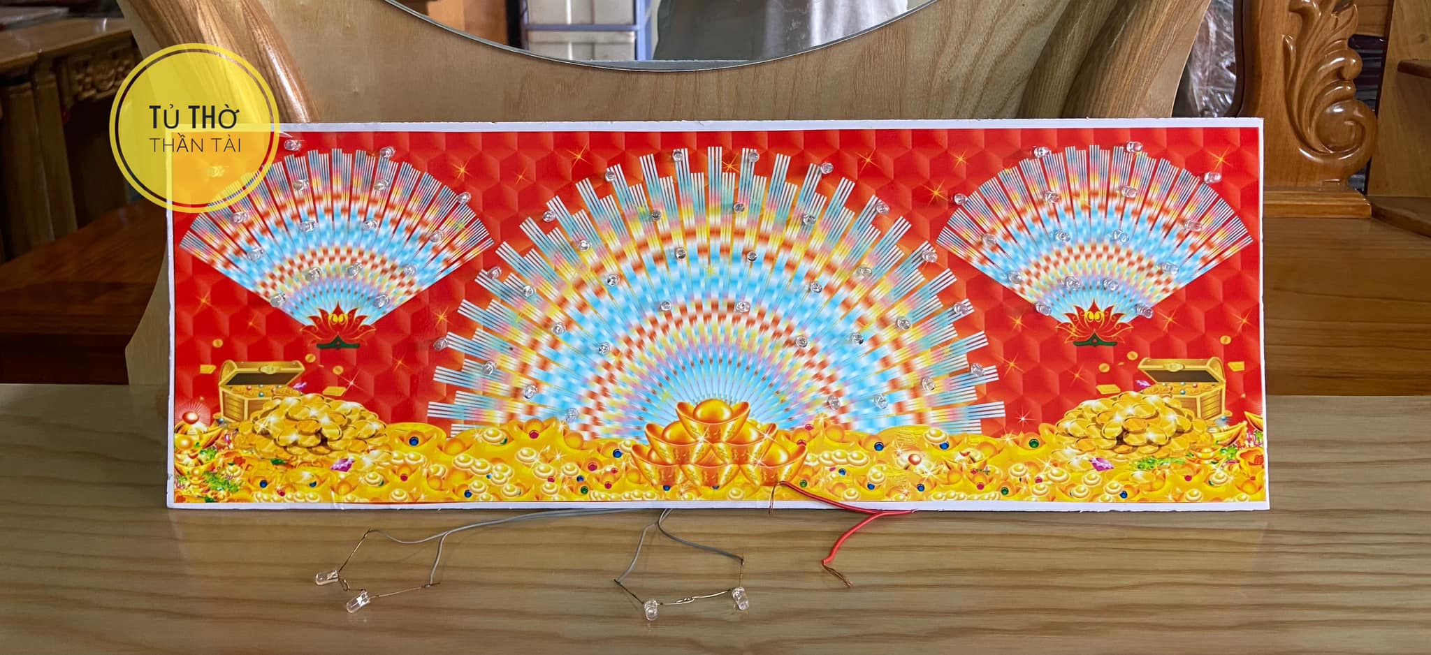 - BMĐ34x14cm: Kích thước bảng mạch; chiều dài 34cm x chiều cao 14cm. Dùng để thay thế cho bàn thờ thần tài hộp đèn loại kích thước: 42 X 42 X 68CM