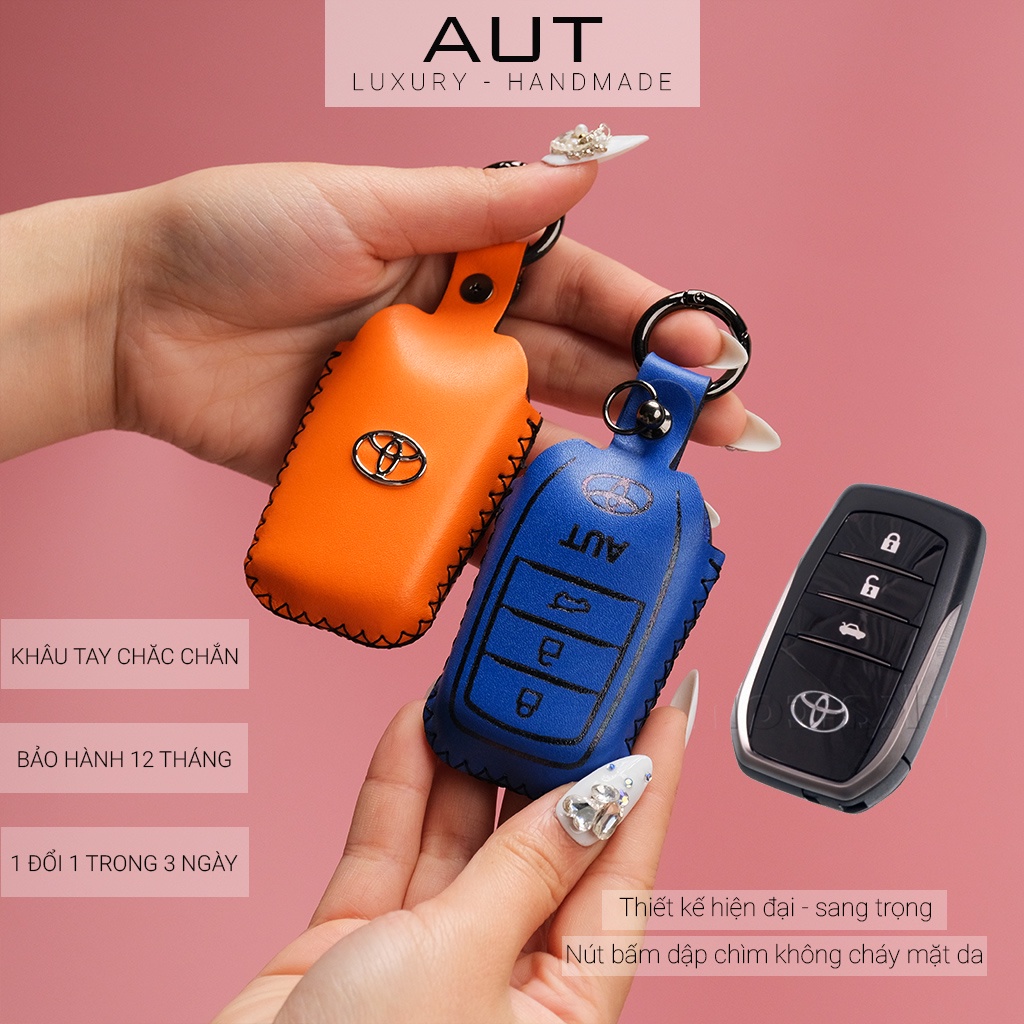 Giới thiệu Bao da chìa khoá Toyota Fortuner Camry Innova V Hilux G Land Cruiser 3 nút bấm da bò khâu tay TFO3 AD