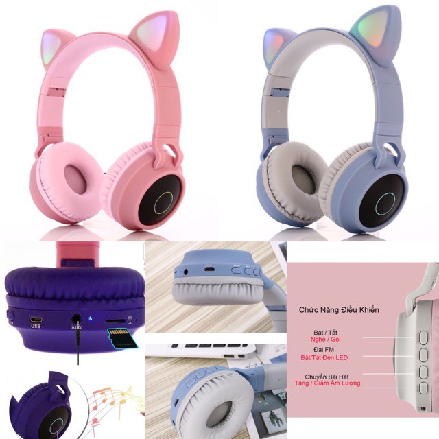 Thiết Bị Điện Tử > Tai Nghe > Chụp tai bluetooth || ( Bảo Hành 12 Tháng ) Tai Nghe Mèo Bluetooth Siêu Dễ Thương Có Tích Hợp Mic Và Đèn Led Nháy Cùng Dung Lượng Pin Khủng