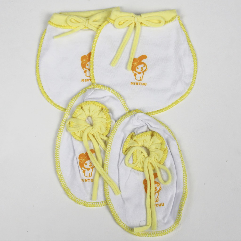Giới thiệu Bao tay bao chân cột dây Mintuu màu trắng, viền màu cho bé