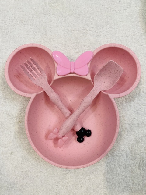Giới thiệu Bát/Khay ăn dặm lúa mạch Mickey kèm thìa và nĩa (có hộp)