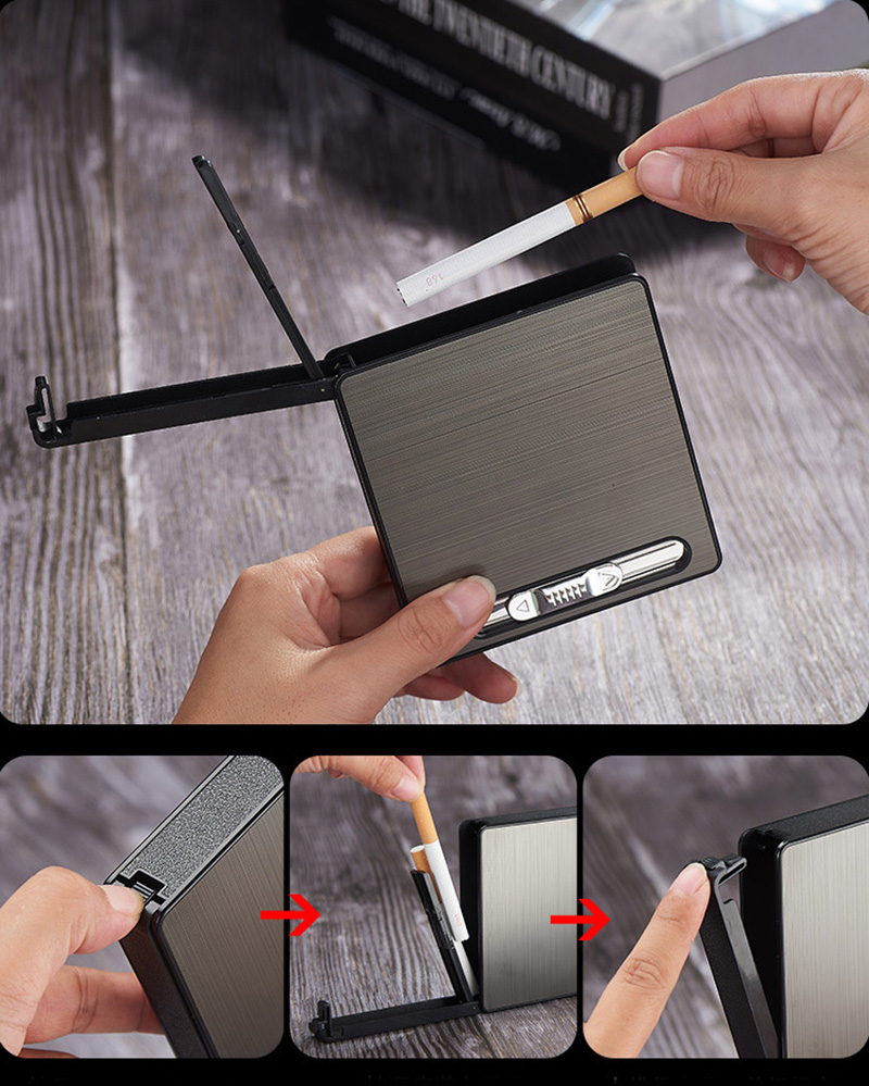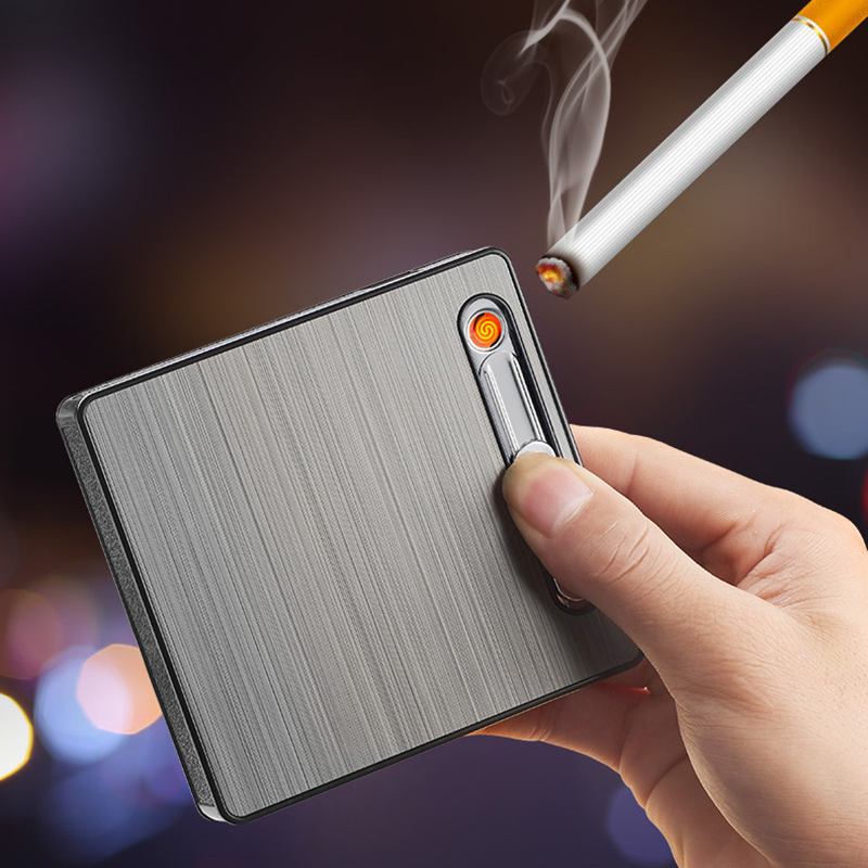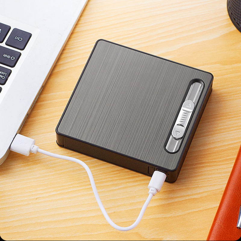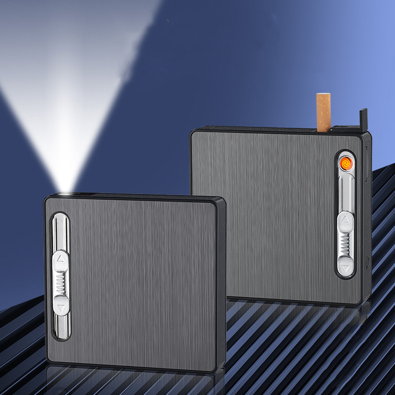 Bật Lửa Điện Kiêm Hộp Đựng Thuốc 20 Điếu Có Đèn Pin - Sạc Điện