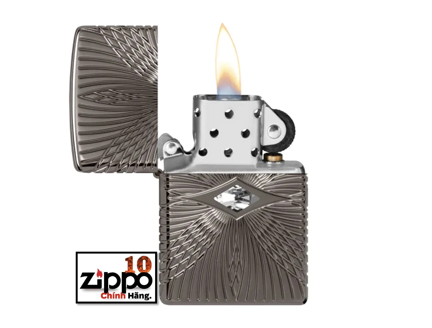 Hình khắc MultiCut êm dịu và đối xứng tỏa ra từ pha lê rực rỡ được dán vào chiếc bật lửa vỏ dày Armor Black Ice lấp lánh này và tiếp tục liền mạch xung quanh tất cả các mặt của sản phẩm. Được đóng gói trong một hộp đựng dạng quà tặng.