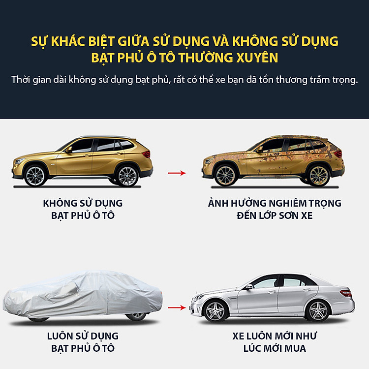 - Một sản phẩm bạt phủ xe với chất liệu cao cấp giúp bảo vệ xe bạn khỏi nắng, mưa bụi, bụi bẩn hay sương sớm.