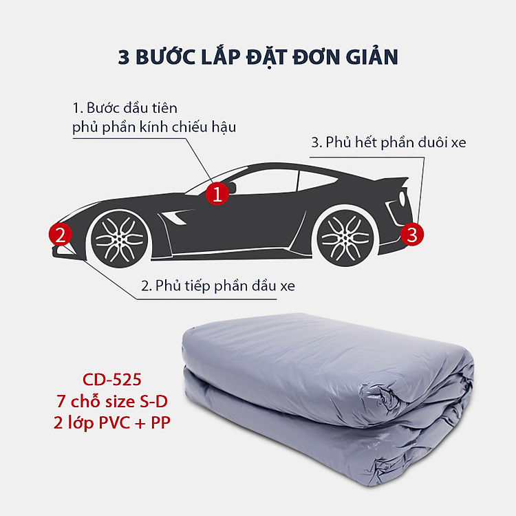 Hướng dẫn sử dụng và bảo quản Bạt phủ ô tô CIND CD-525 7 chỗ size S-D 2 lớp PVC+PP