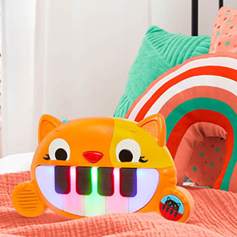 *Sử dụng 5 loại nhạc cụ khác nhau: Piano, Bells, Organ, Banjo và các nốt nhạc được ngân nga theo tiếng mèo.,giúp bé thỏa sức sáng tạo các bài hát và âm thanh theo ý thích.