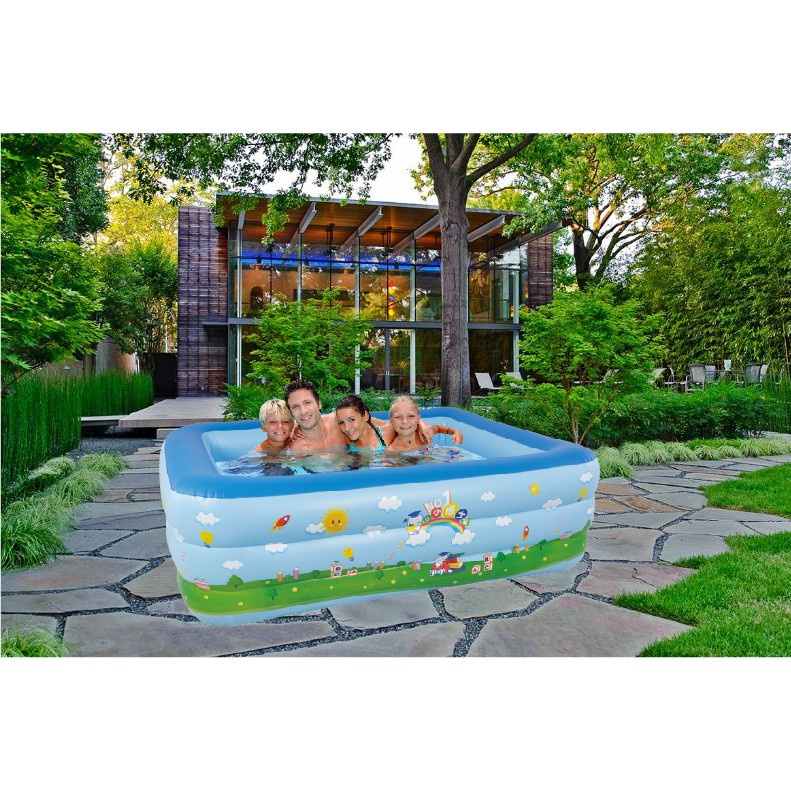 Bể bơi phao 3 tầng cho bé size to 180x140x60cm - Mẫu mới 2017 làm từ chất liệu nhựa PVC an toàn, dày dặn, đàn hồi tốt, cho cảm giác êm khi tiếp xúc sau khi được bơm hơi, không gây kích ứng da và an toàn với sức khỏe.