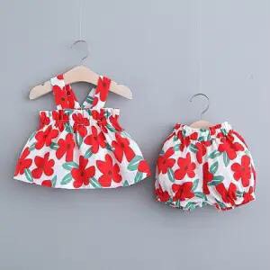 Thời trang trẻ em & trẻ sơ sinh > Quần áo bé gái > Com lê & đồ bộ || |FAMARAL2 giảm 10k cho đơn 50k|Bộ bé gái đũi mềm áo dây quần bồng hoa Đỏ và Vàng XHN663
