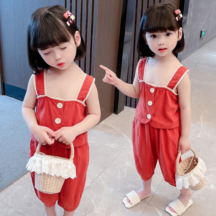 Giới thiệu Bộ bé gái hè chất đũi 2 dây bản to phối bèo cúc XHN662