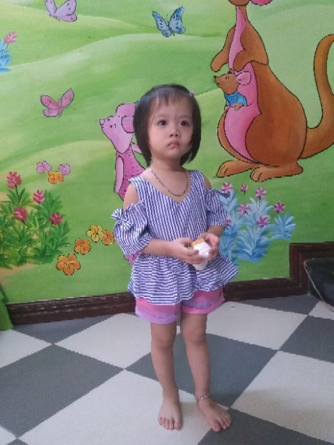 Quần chất kaki có giãn mặc mềm mại dễ chịu. Chun cạp to không bị hằn bụng bé. Áo vải Kate mặc thoáng mát.