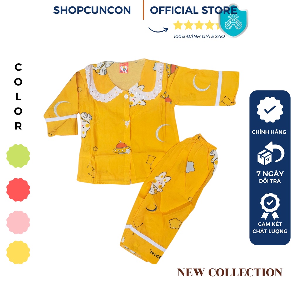 ƯU ĐIỂM CỦA ĐỒ NGỦ CHO BÉ GÁI TẠI CUNCON STORE _Đồ bộ cho bé gái sơ sinh, pijama cho bé gái được thiết kế và gia công hoàn toàn 100% tại xưởng ở Việt Nam, tối ưu hóa chi phí nhập hàng và vận chuyển, nguồn gốc vải tại Việt Nam _ Đồ bộ bé gái tay dài quần dài thật sự cần thiết cho các mẹ khi bé thường xuyên ngủ máy lạnh điều hòa nhưng lại không chịu đắp chăn _Pijama bé gái mặc ngủ với ưu điểm vượt trội về tính bền bỉ sau thời gian sử dụng, sự thoải mái trong cử động vui chơi của bé cũng như sự thoáng mát vào mùa hè, độ mỏng nhẹ rất tốt cho việc mau khô vào mùa mưa _ Chất vải mát, êm cho bé trong các hoạt động; thấm hút mồ hôi khá tốt cho bé vui chơi thoải mái _ Không gây ngứa, không ra màu khi giặt _ Chất vải mềm mịn