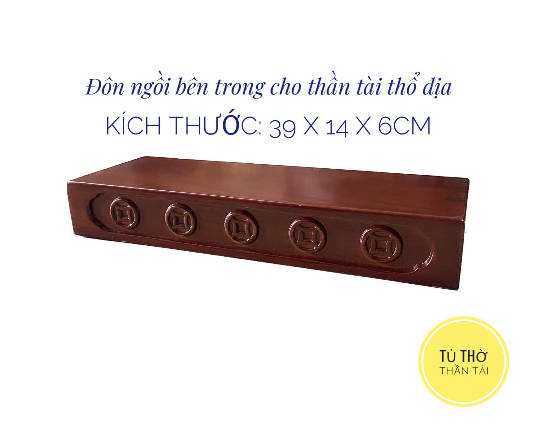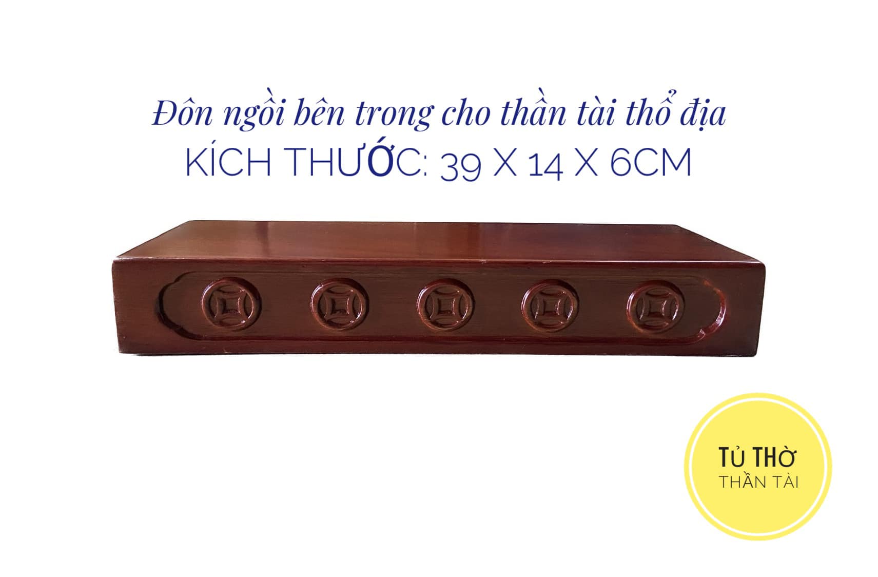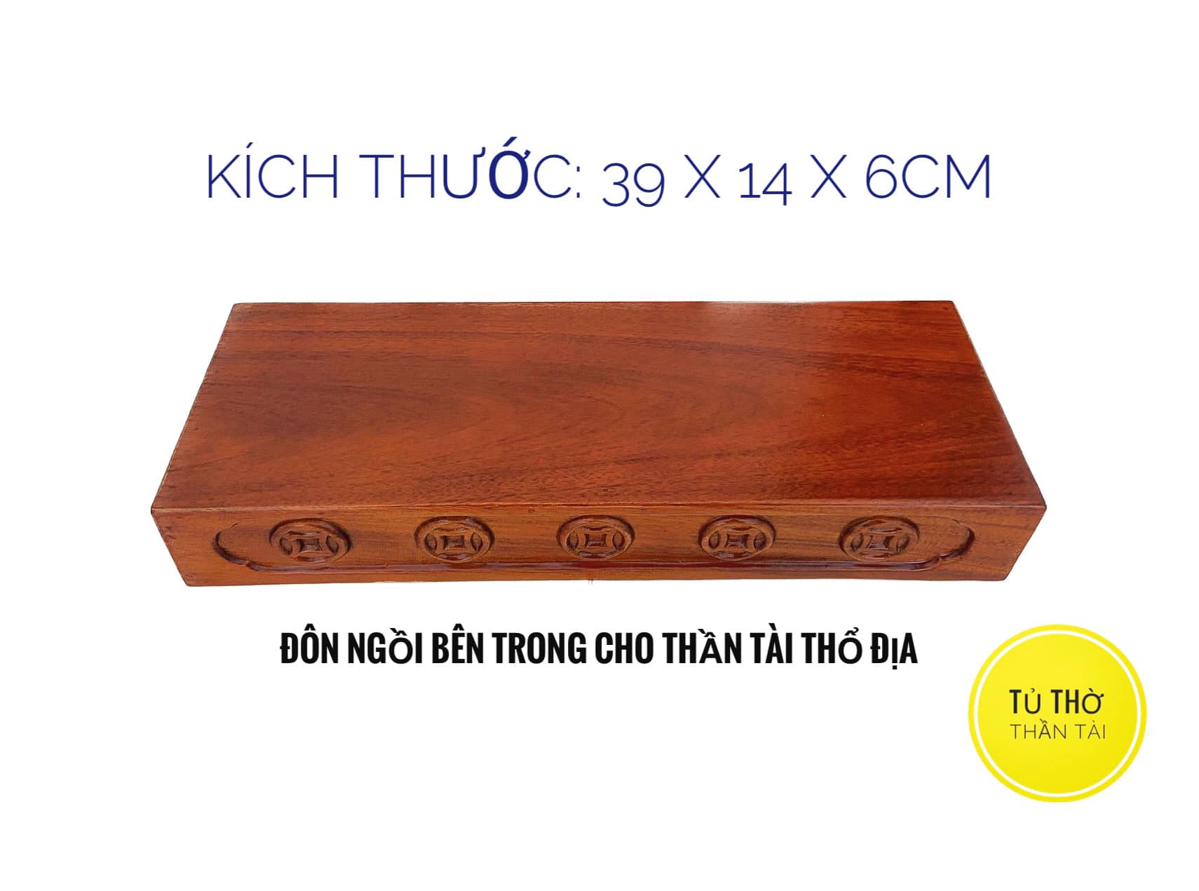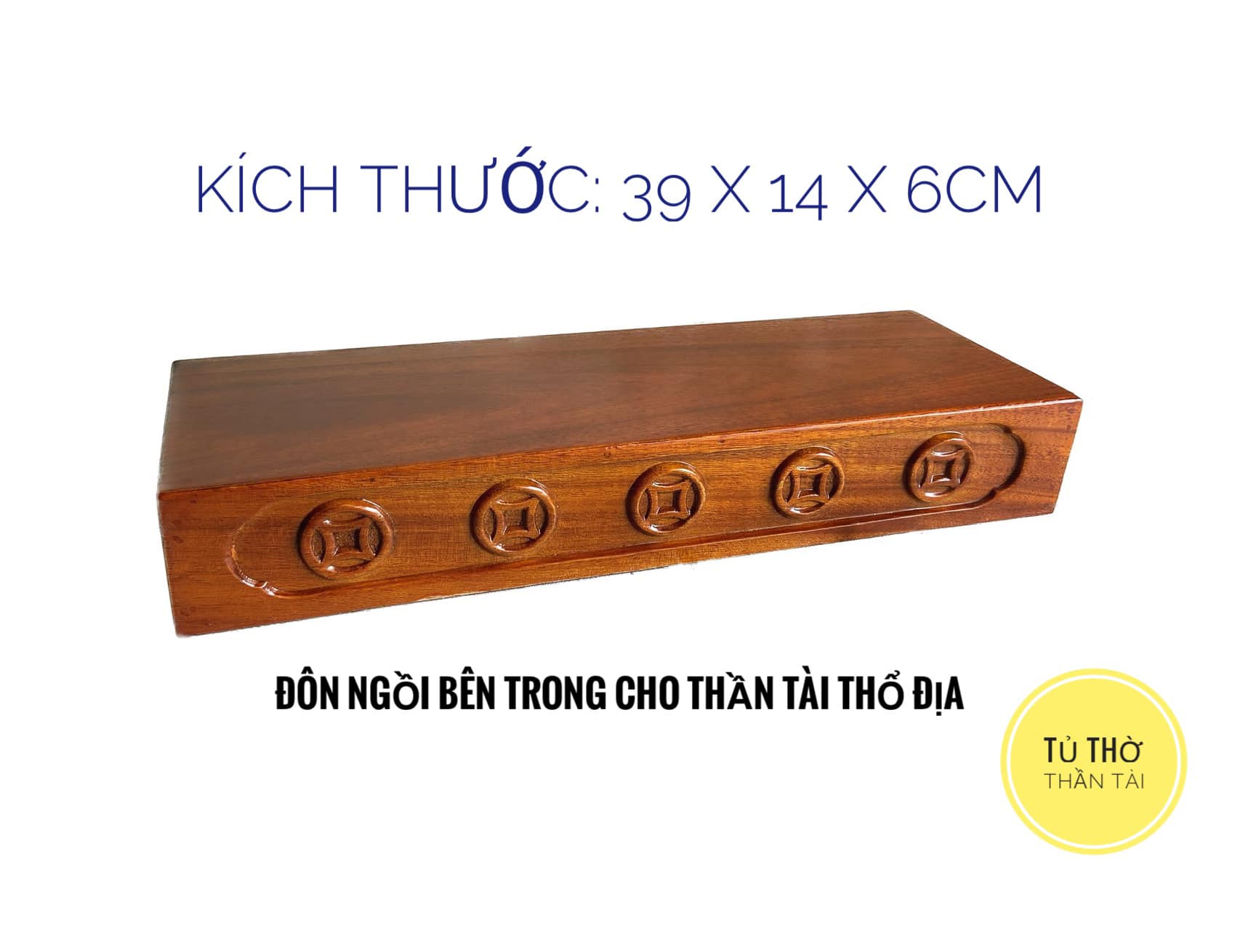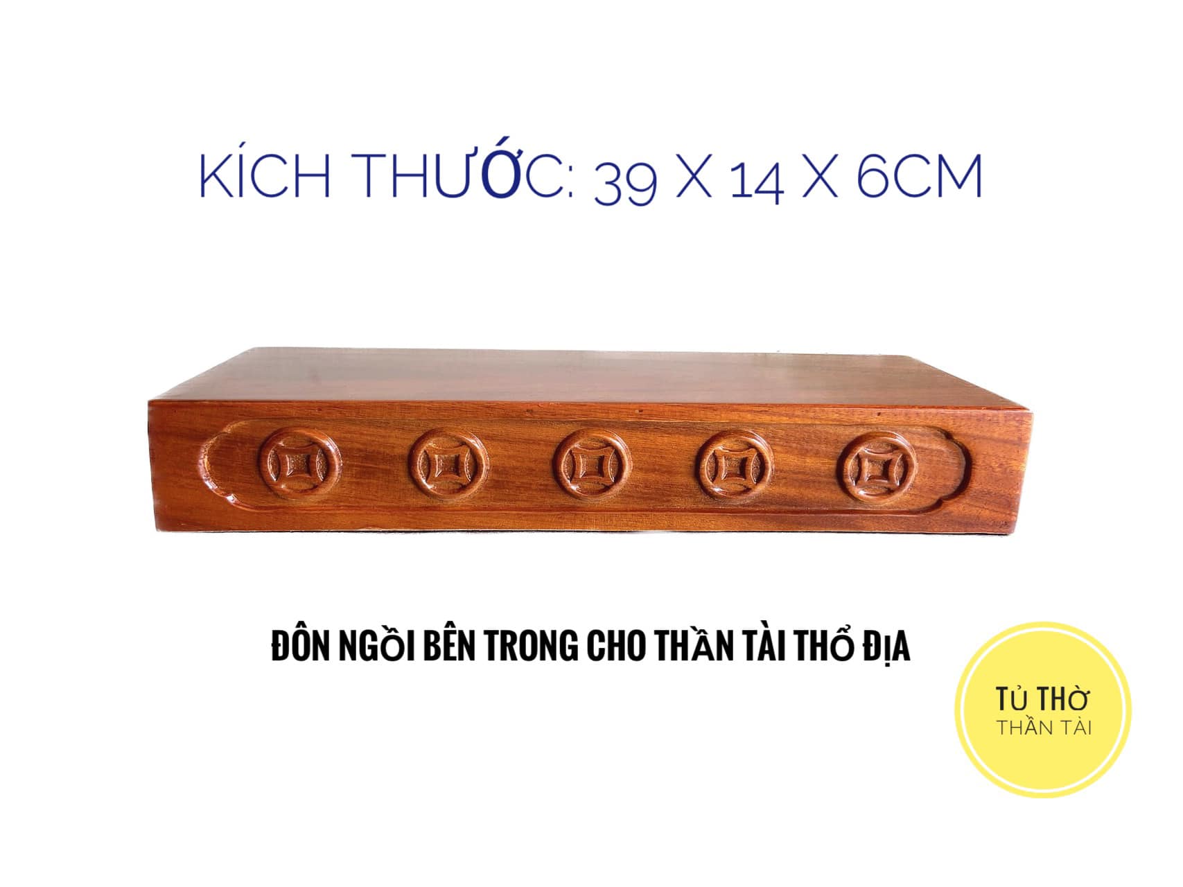 - Chiều ngang 39cm x chiều sâu 14cm x chiều cao 6cm. Dành cho bàn thờ thần tài có chiều ngang 48cm