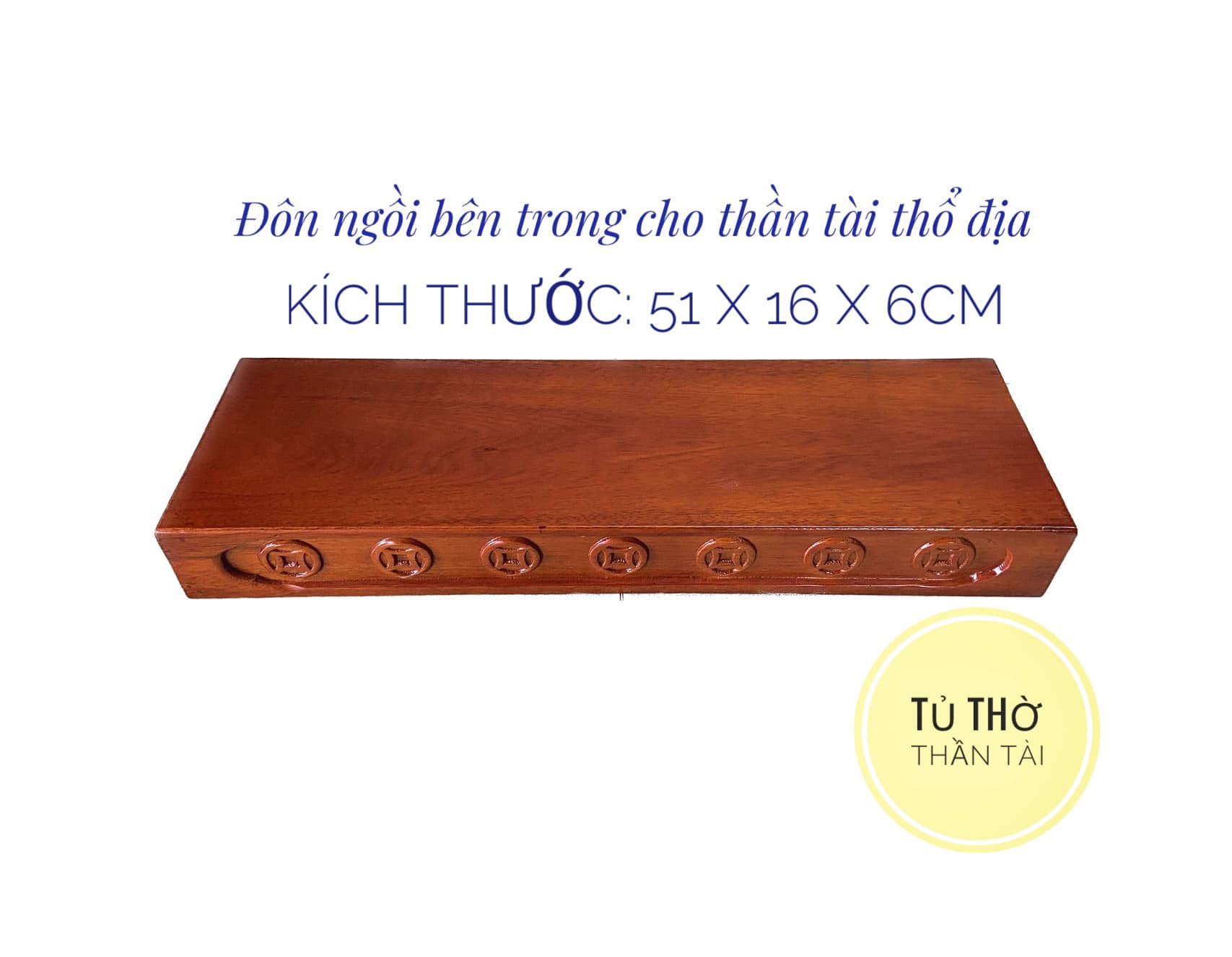 - Chiều ngang 50cm x chiều sâu 16cm x chiều cao 6cm. Dành cho bàn thờ thần tài có chiều ngang 60cm