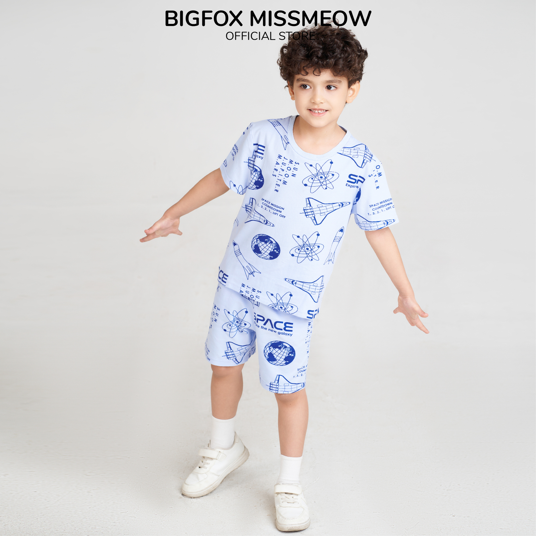 | Set bộ hè bé trai Bigfox Miss Meow, cộc tay chất cotton xuất Hàn, in phi thuyền size đại 3,6,9,10,11 tuổi 30kg 40kg 1905
