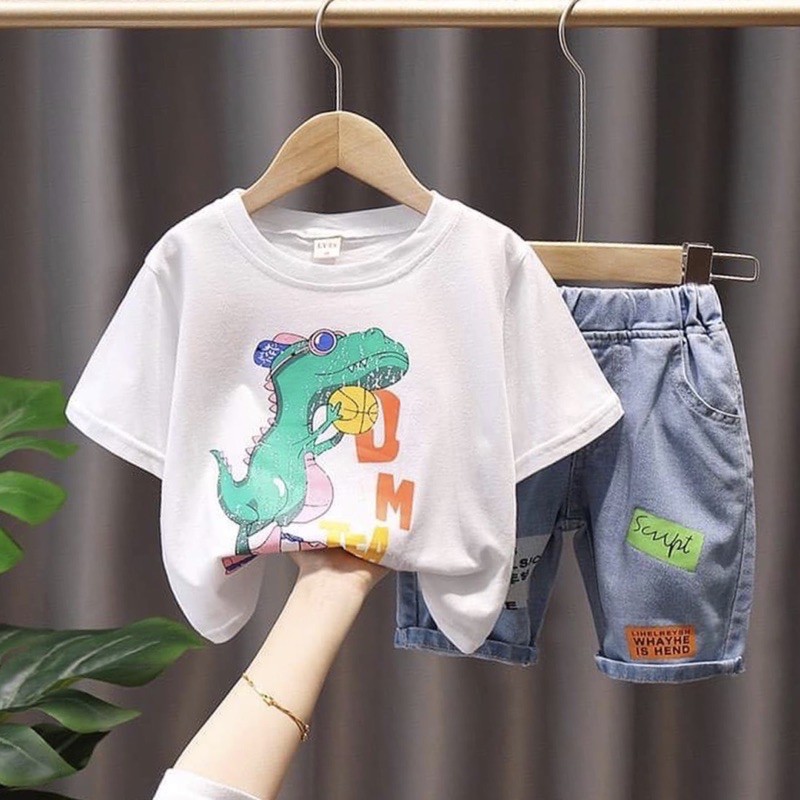 Thời Trang Trẻ Em > Bé trai | 3 tháng-4 tuổi > Set trang phục || Bộ bé trai quần Jean và áo cotton hình khủng Long