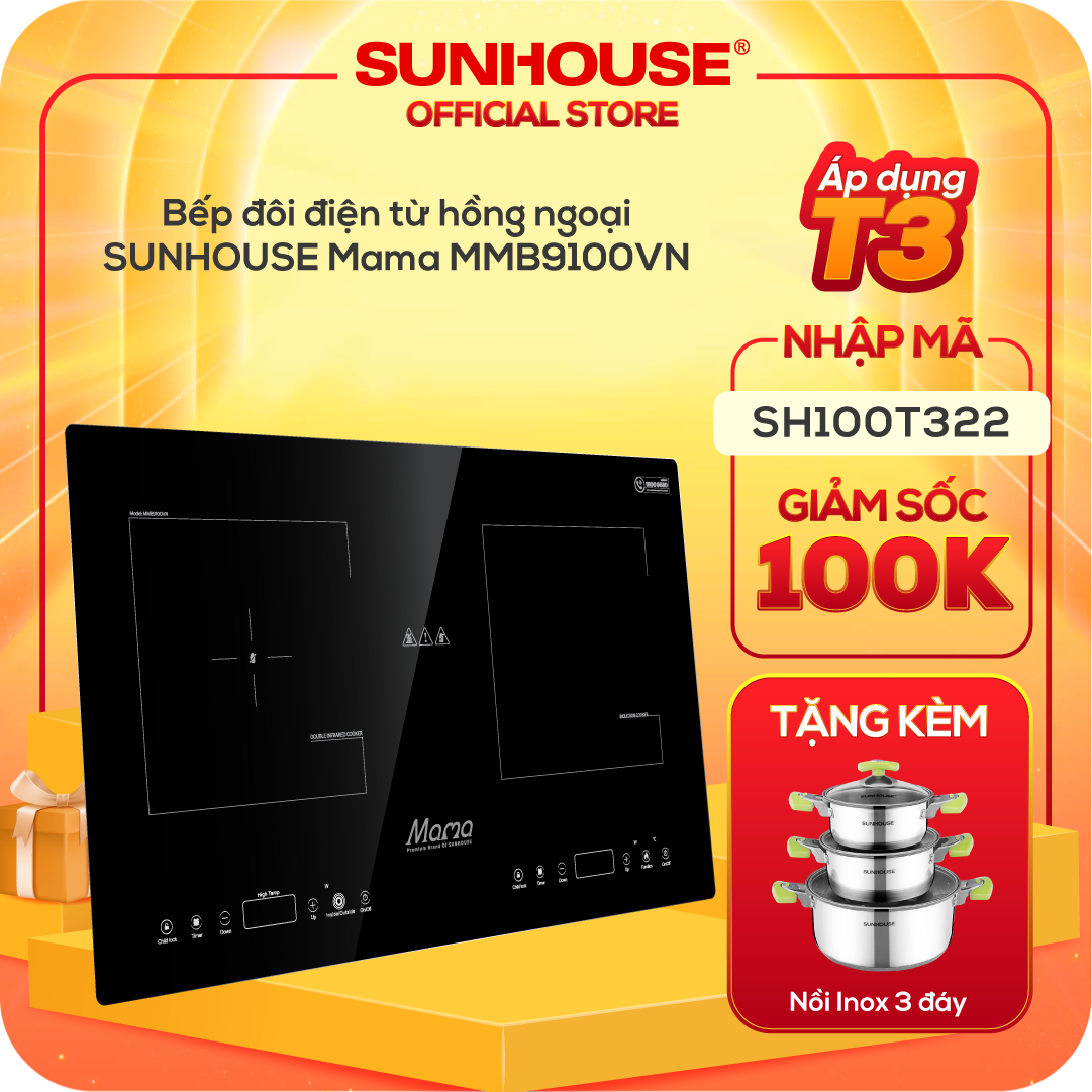 Bếp đôi điện từ hồng ngoại Sunhouse Mama MMB9100VN được trang bị nhiều tính năng an toàn hiện đại như hẹn giờ, khóa trẻ em mang đến trải nghiệm nấu ăn hoàn toàn khác biệt so với các mẫu bếp truyền thống.