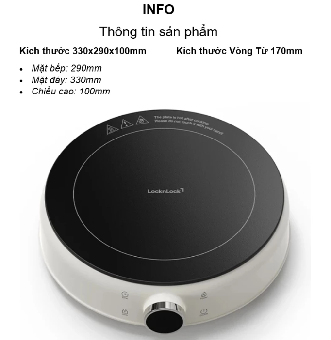 Bếp Điện Từ Mini LocknLock Mini Induction Cooker EJI126IVY 1500W, Hàng Chính Hãng