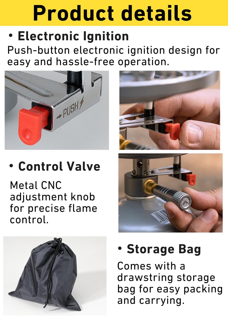 Lý tưởng cho những người đam mê hoạt động ngoài trời cần thiết bị nấu ăn đáng tin cậy và an toàn, bếp OD-4 đảm bảo rằng bạn có thể thưởng thức những bữa ăn nóng hổi bất kể cuộc phiêu lưu của bạn đưa bạn đến đâu. Với chức năng đánh lửa thủ công, điều khiển ngọn lửa có thể điều chỉnh và thiết kế nhỏ gọn, chiếc bếp này giúp việc nấu nướng ngoài trời trở nên tiện lợi và thú vị.