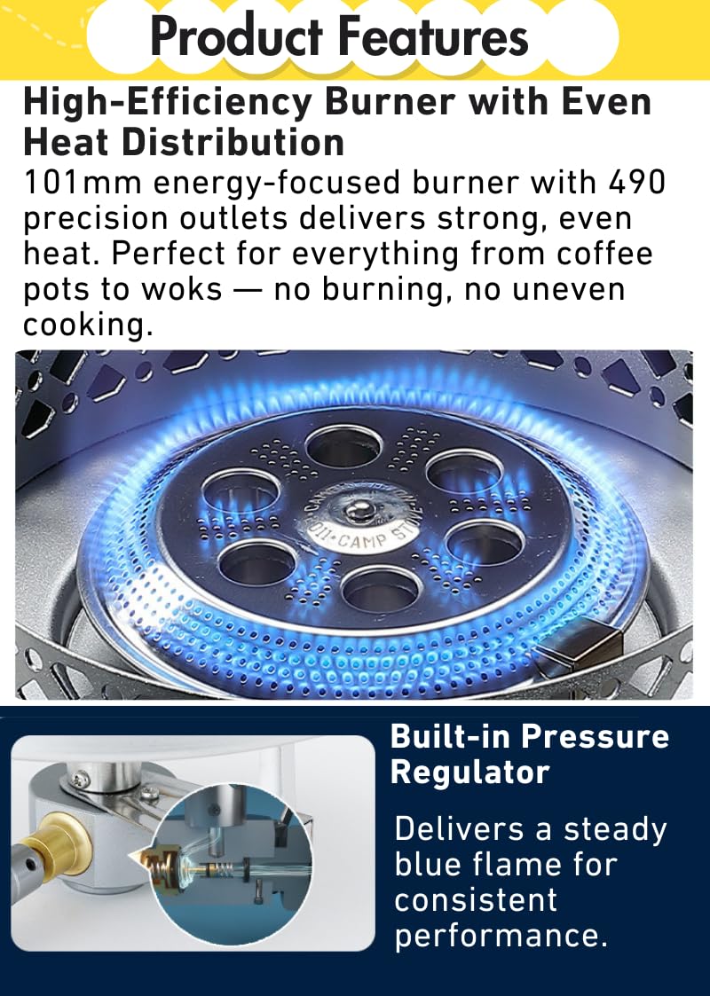 Bếp cắm trại di động Campingmoon OD-4 là giải pháp lý tưởng cho việc nấu nướng ngoài trời. Cho dù bạn đang cắm trại, đi bộ đường dài hay tận hưởng một buổi dã ngoại, chiếc bếp nhỏ gọn và hiệu quả này mang lại hiệu suất nấu nướng mạnh mẽ trong mọi môi trường. Được chế tạo bằng thép không gỉ, hợp kim nhôm và đồng chất lượng cao, OD-4 được thiết kế để có độ bền, dễ sử dụng và tính linh hoạt.