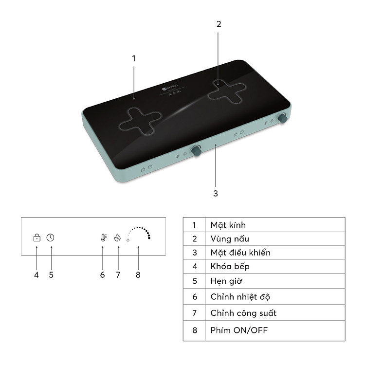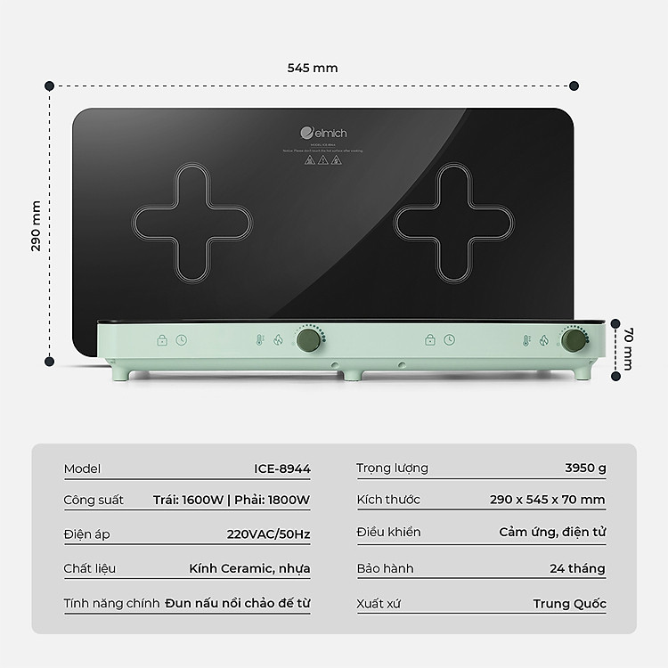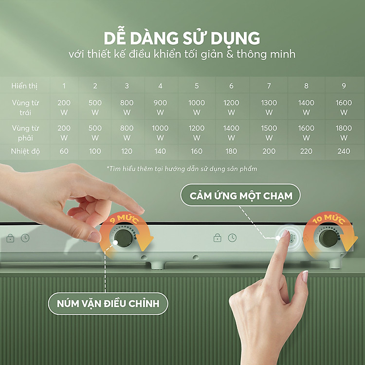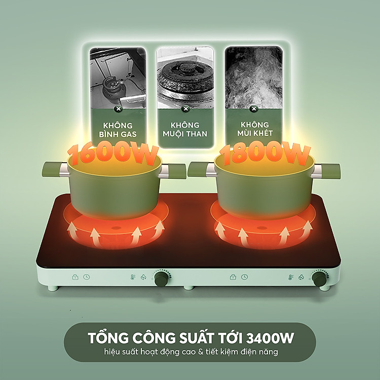 Công suất | Bếp trái: 1600W- Bếp phải 1800W; tối đa 3400W |