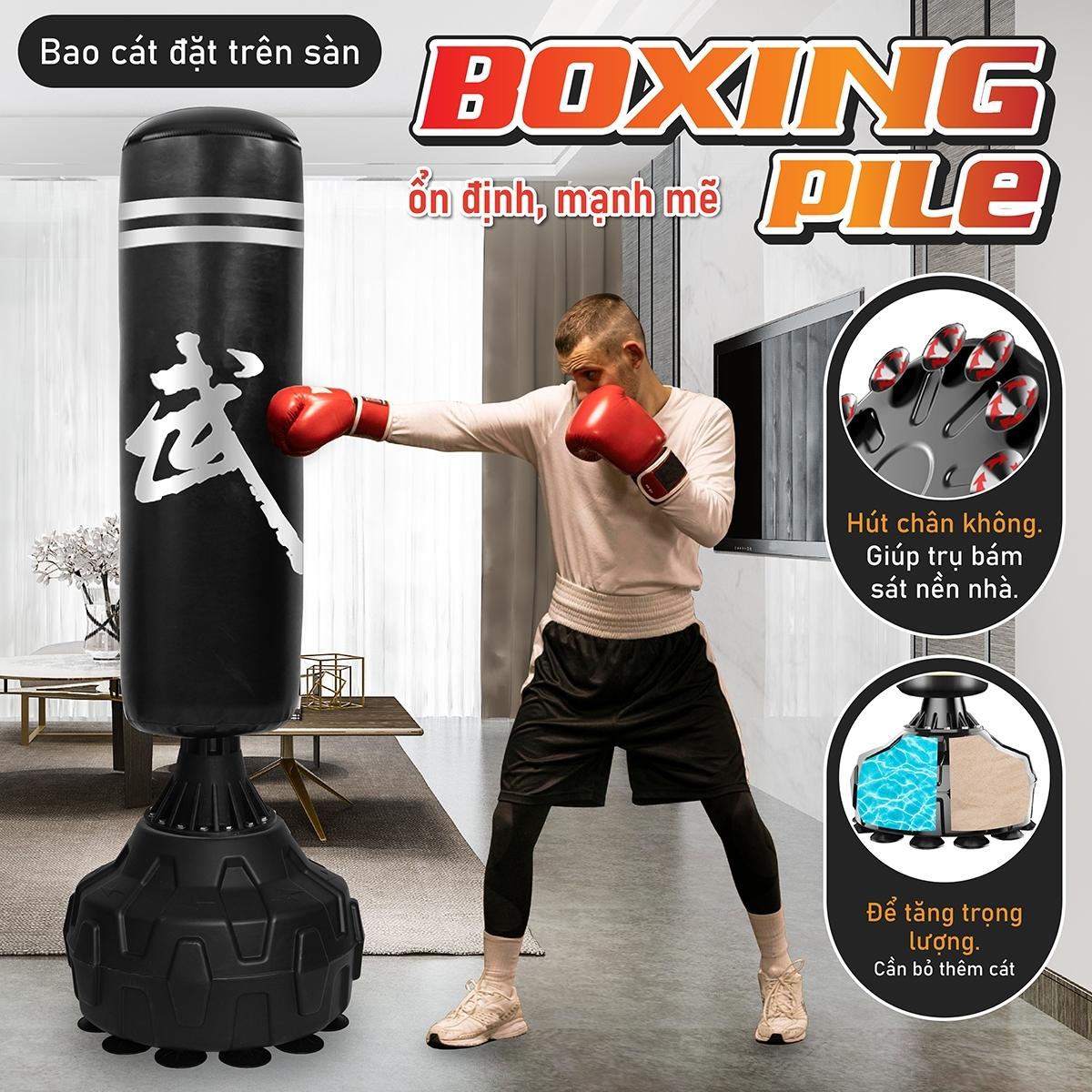 Trụ đấm bốc tự cân bằng được làm từ Chất liệu nhựa PVC giả da công nghiệp Bền chắc, đàn hồi cực tốt, độ dày vừa phải.
