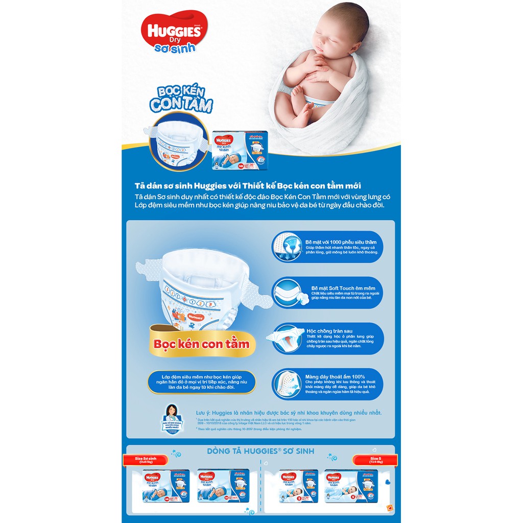 Tã dán sơ sinh Huggies với Thiết kế Bọc kén con tằm mới