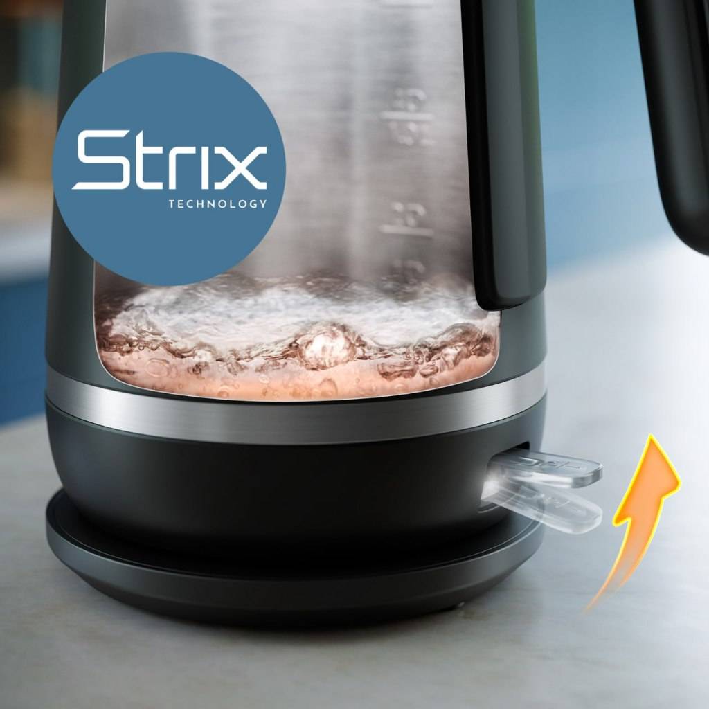 Bình đun siêu tốc Philips HD9395/90 có công suất 2200W đun nấu nhanh, tiết kiệm thời gian. Bên cạnh đó bình trang bị hệ thống điều khiển Strix đảm bảo bình đun sẽ tự động tắt khi hết nước hoặc khi được nhấc lên khỏi đế. Điều này làm giảm nguy cơ không có nước mà vẫn bật hoạt động gây sôi khô làm hư hỏng bình và tránh lãng phí năng lượng.