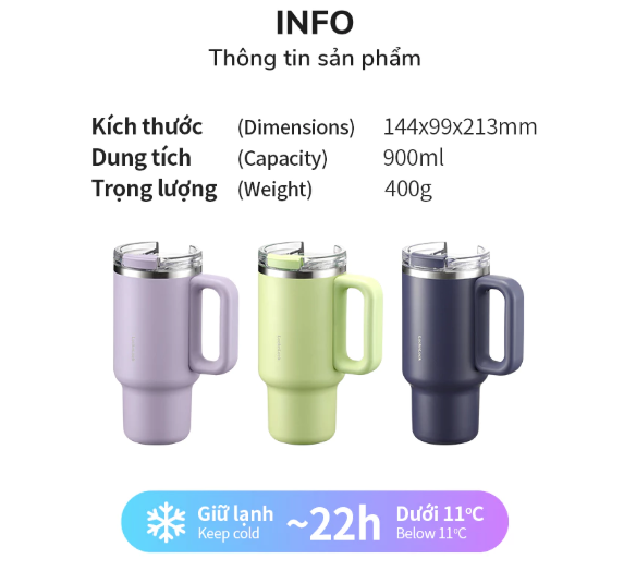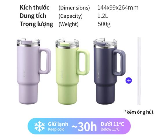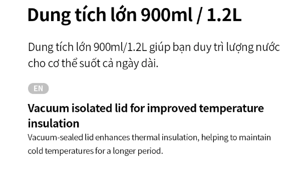 - Dung tích lớn 900ml/1.2L giúp bạn duy trì lượng nước cho cơ thể suốt cả ngày dài.