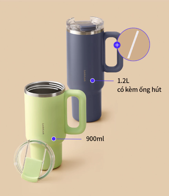 Bình giữ nhiệt LocknLock Balance grip tumbler LHC4397 dung tích 900ml / LHC4398 dung tích 1.2L có quai - 3 màu