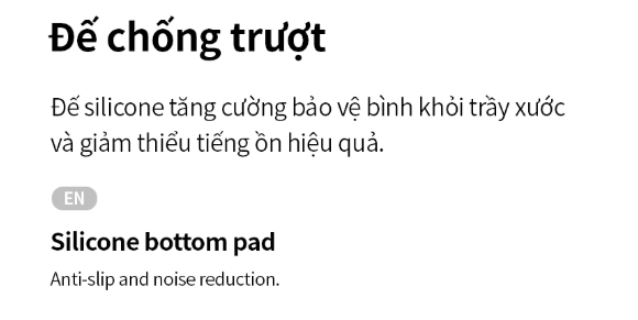 - Đế Silicone chống trơn trượt và giảm tiếng ồn