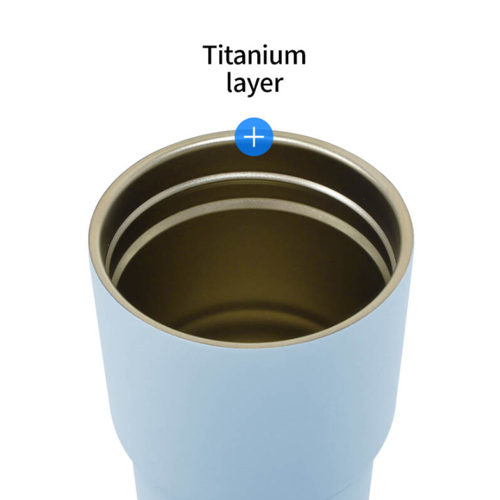 Chất liệu: Thân cốc: Bên trong: thép không gỉ 304 mạ titan; Nắp, lọc trà: nhựa PP; Gioăng & miếng lót đế: silicone