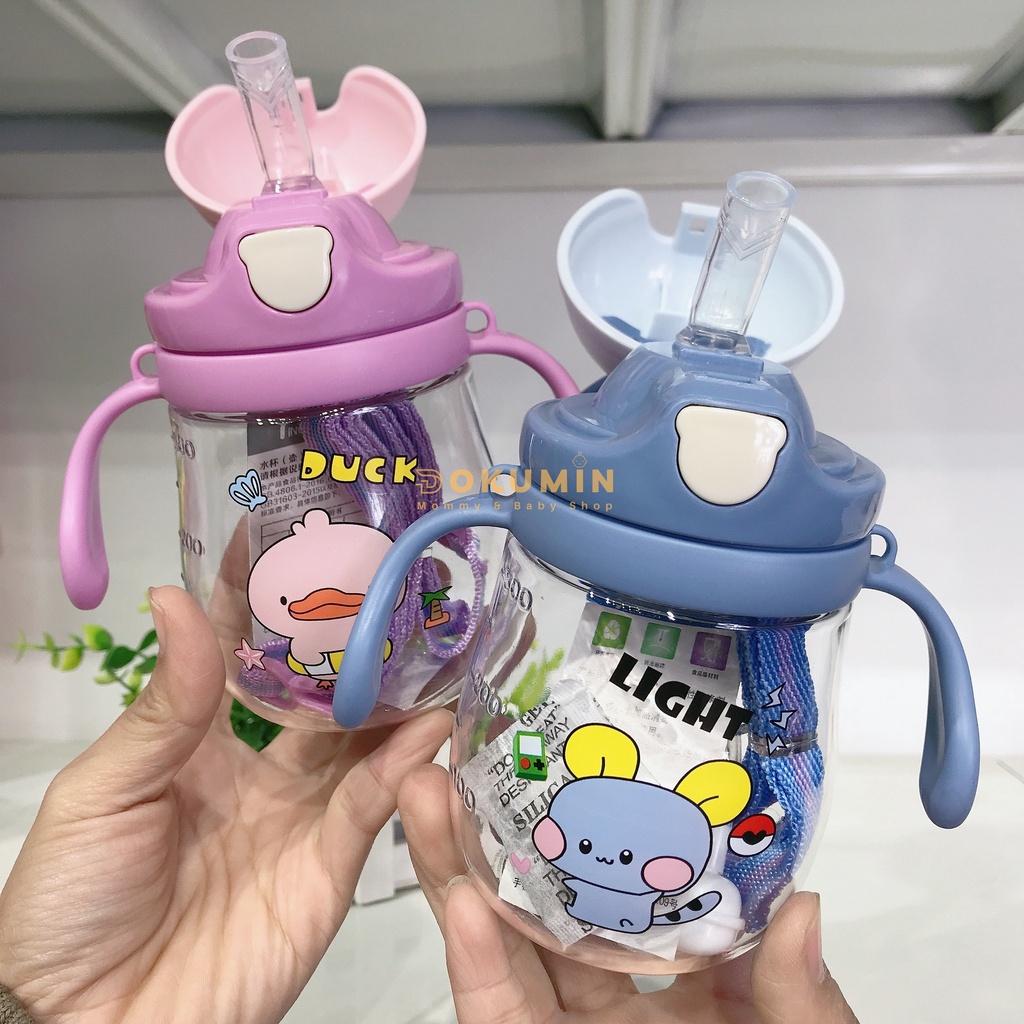 Bình nước cho bé có tay cầm cho bé đi học có ống hút chống sặc dây đeo giá rẻ cute cao cấp DOKUMIN BUN035