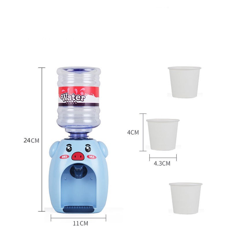 💗Product introduction💗 [Product]: Children's mini water dispenser [Material]: Environmentally friendly ABS [Color]: pink, blue [Size]: 11*24cm 【Description】: 1. Water can be produced with one tap, so that your baby will fall in love with drinking water 2. The water storage tank is detachable and easy to clean, keeping babies away from bacteria 3. Deliver 3 paper cups