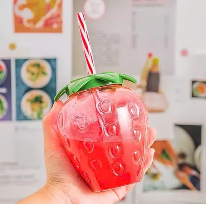 Sản phẩm gồm: 1bình nước, 1 móc khóa dâu gắn trên bình, 1 ống hút
