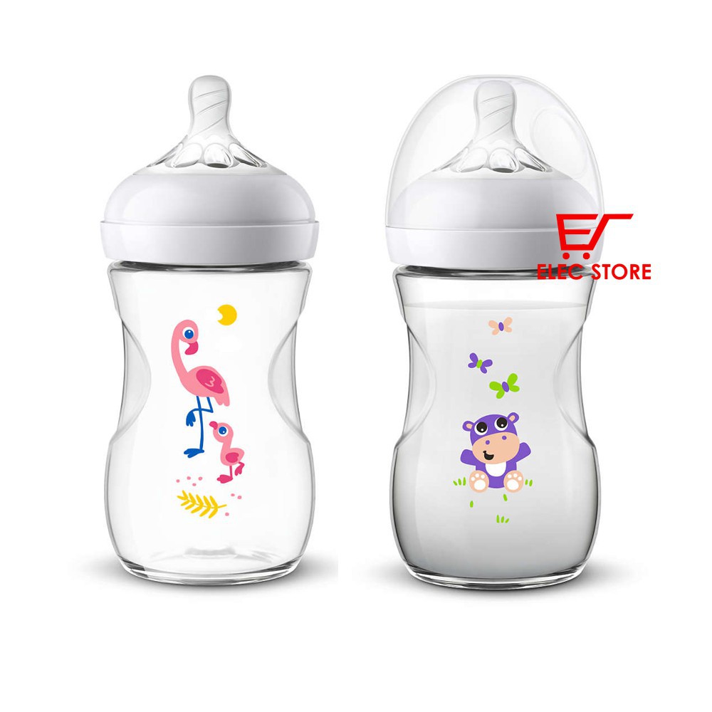 Giới thiệu Bình sữa Avent Natural 260ml hoạ tiết Chim Hạc và chú Hà mã
