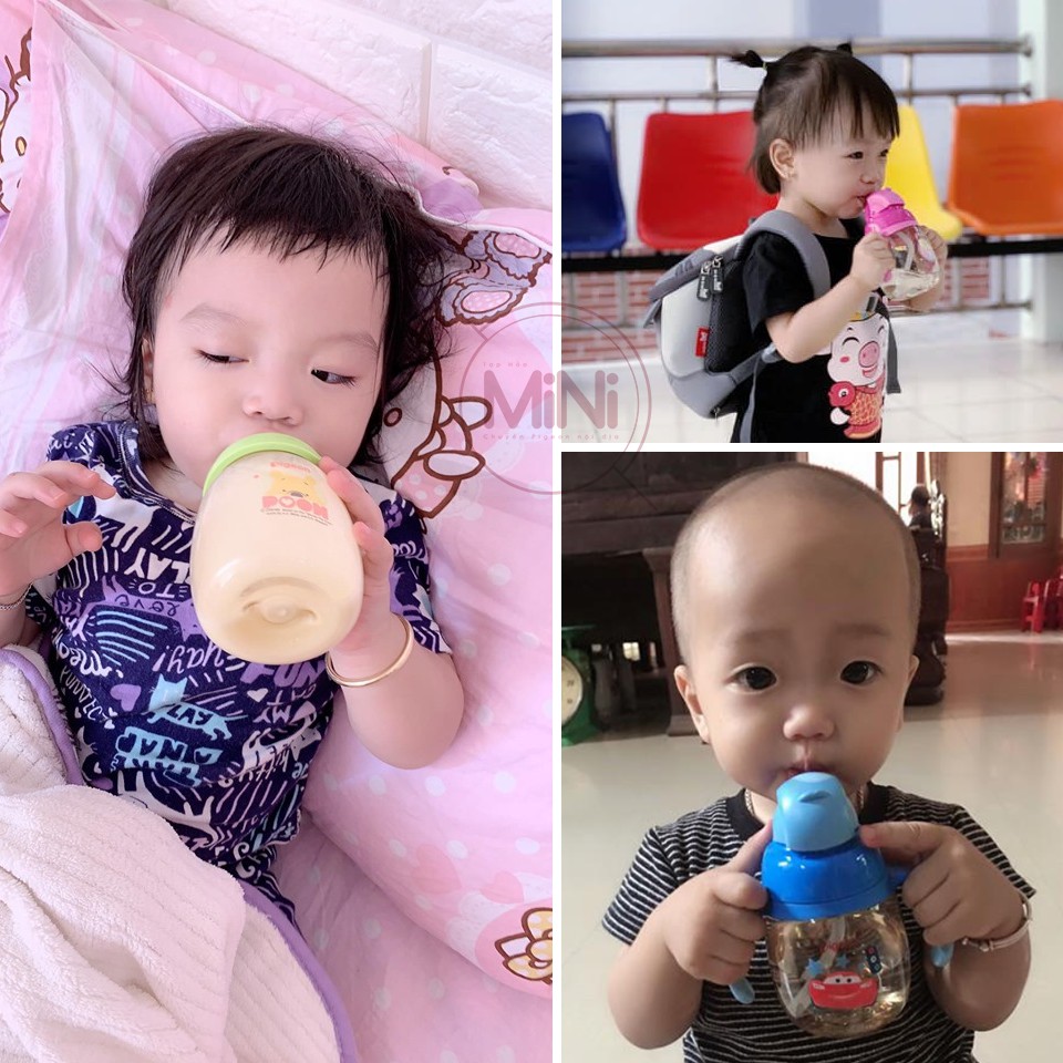 🎶 Bình Pigeon có 3 loại theo các độ tuổi của các bé: 🙌 Bình mickey nhỏ vàng: dành cho các bé từ 3 tháng trở lên 🙌 Bình gấu Pooh xanh: dành cho các bé từ 5 tháng trở lên 🙌 Bình xe đua McQueen + Cinderella :có ống hút cho bé tập uống bằng ống hút, dành cho các bé từ 8 tháng trở lên