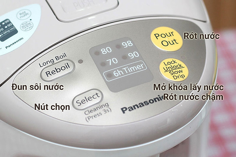 Chế độ tẩy cặn (Cleaning) tiện dụng khi bình thủy điện sử dụng lâu ngày bị đóng cặn. Để tẩy cặn cho bình thủy điện: cho acid citric (mua ở tiệm thuốc) và nước vào bình, nhấn nút “Select” trong 3 giây, để bình đun sôi nước. Hết thời gian, rút điện, để bình nguội, đổ nước ra và vệ sinh bình. Sau 1 - 2 tháng sử dụng nên tẩy cặn bình 1 lần.