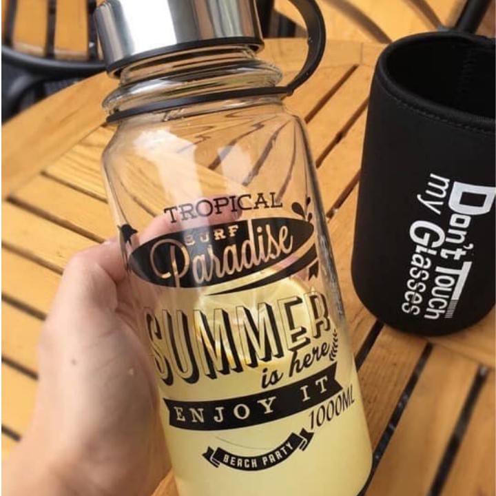 Giới thiệu Bình thủy tinh DETOX SUMMER 700-1000ML♥COMBO 2 bình giá còn 99k♥ hàng cao cấp, có nắp, có quai xách [ HOÀN XU ]