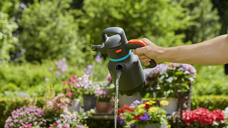 Bình tưới cây áp suất 1.25 lít Gardena 11120-20. Là một dụng cụ cần thiết cho công việc chăm sóc cây hằng ngày. Được thiết kế và sản xuất theo công nghệ hiện đại và dây chuyền tiên tiến của Đức. với vật liệu là từ nhựa HPDE cao cấp có được độ bền cao, đặc biệt thích nghi được với sự khắc nghiệt của thời tiết ngoài trời, và tác động ngoại lực lớn.