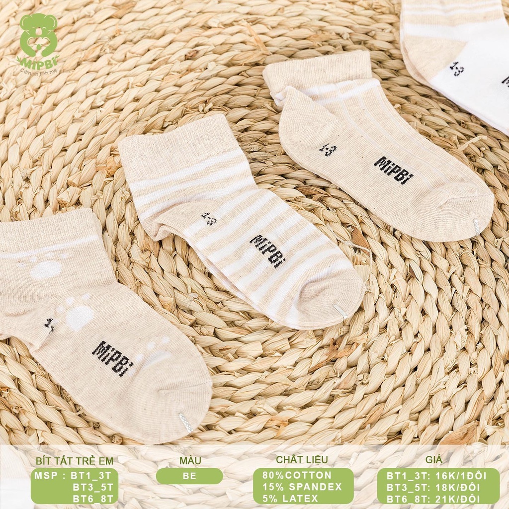 Giới thiệu Bít tất dành cho trẻ em Mipbi 3 size cho bé 1-8 tuổi chất liệu cao cấp kháng khuẩn, không xù, mềm mịn