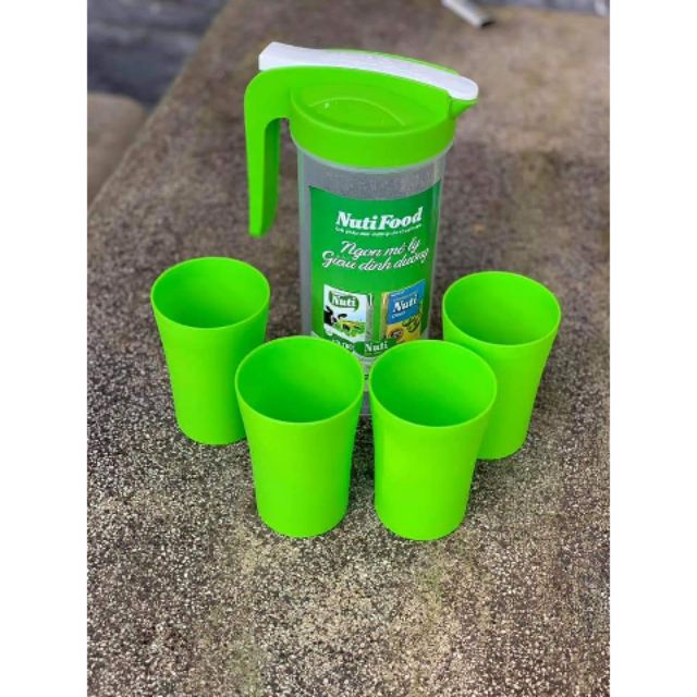 🌀🌀BỘ 1 BÌNH + 4 LY NHỰA_QUÀ NUTIFOOD
