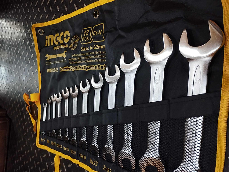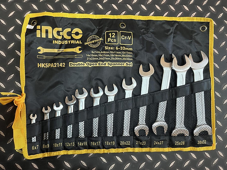 Gồm 12 cờ lê hai miệng. Size:6-32mm (6x7mm,8x9mm,10x11mm,12x13mm, 14x15mm, 16x17mm,18x19mm,20x22mm,21X23mm,24X27mm,25X28mm,30X32mm). Sơn bóng- 8/T"