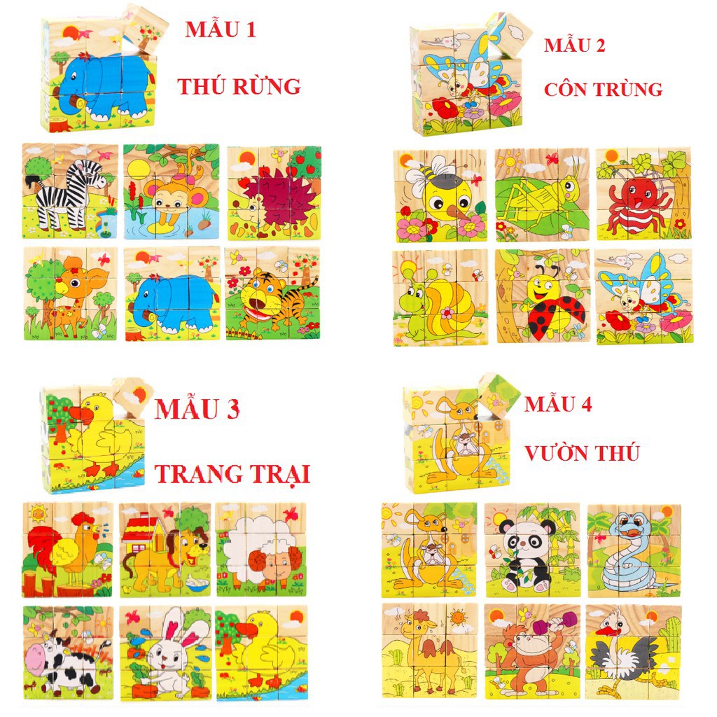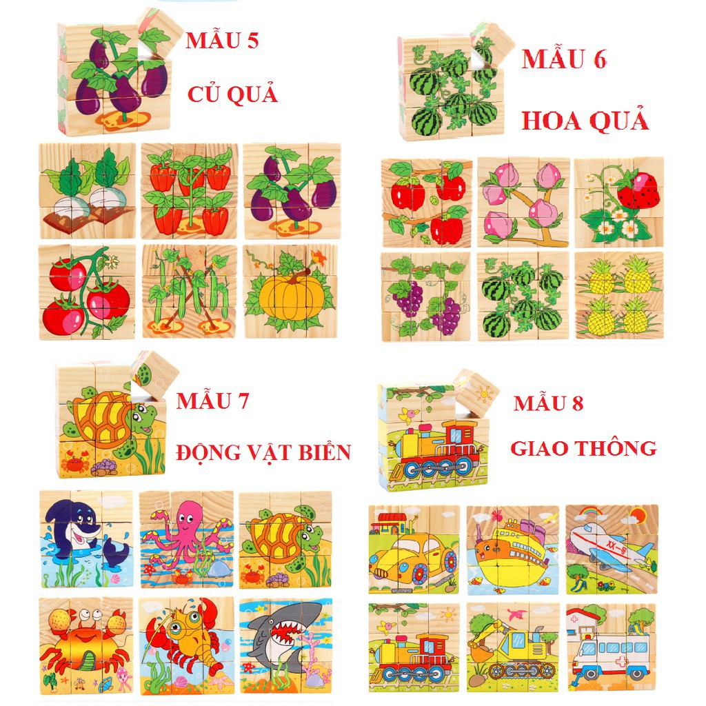 Giới thiệu Đồ chơi bộ ghép hình 6 mặt 9 miếng gỗ cho bé lắp ghép được 6 bức hình khác nhau cho bé