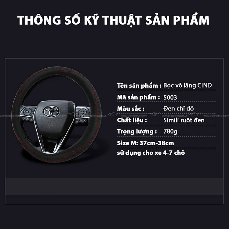 Công dụng của Bọc vô lăng CIND 5003 size M màu đen chỉ đỏ
