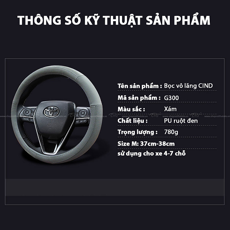 Hướng dẫn sử dụng và bảo quản Bọc vô lăng CIND G300 size M màu xám