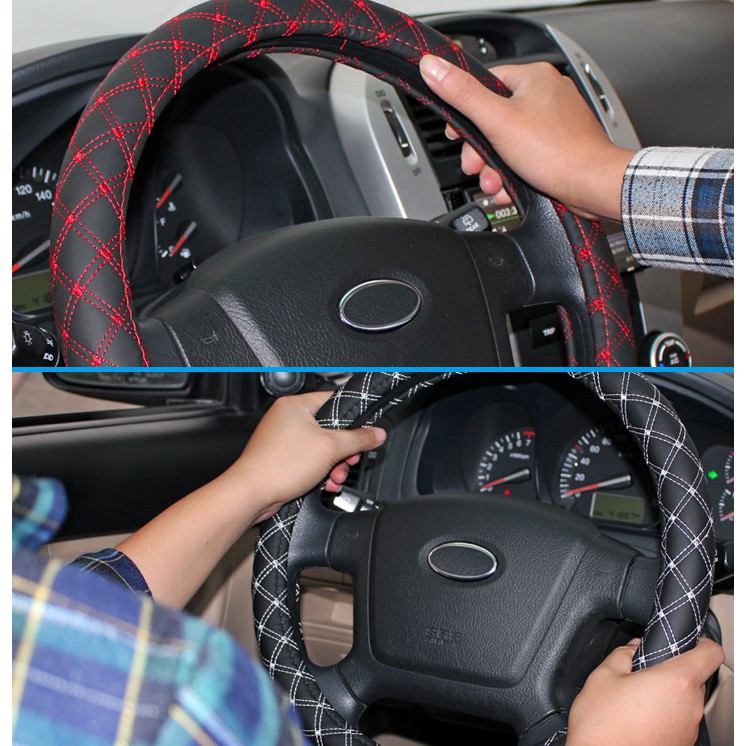 Bọc vô lăng vân chỉ đỏ chỉ trắng chống trơn mồ hôi tay