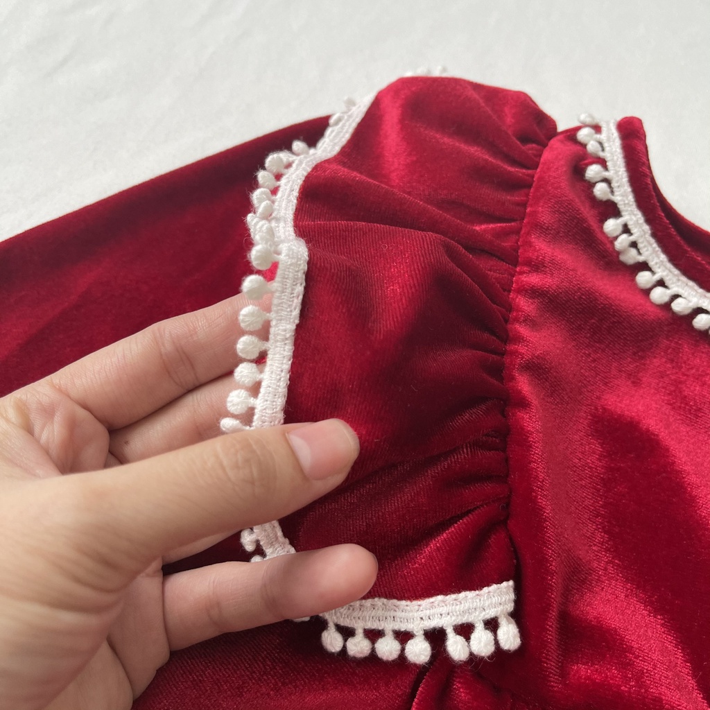 Body sơ sinh bé gái Nina Kids Boutique Đồ em bé Đầy tháng Noel Tết Chất nhung Màu đỏ đô Size 0m 24m Kèm mũ và giày vải