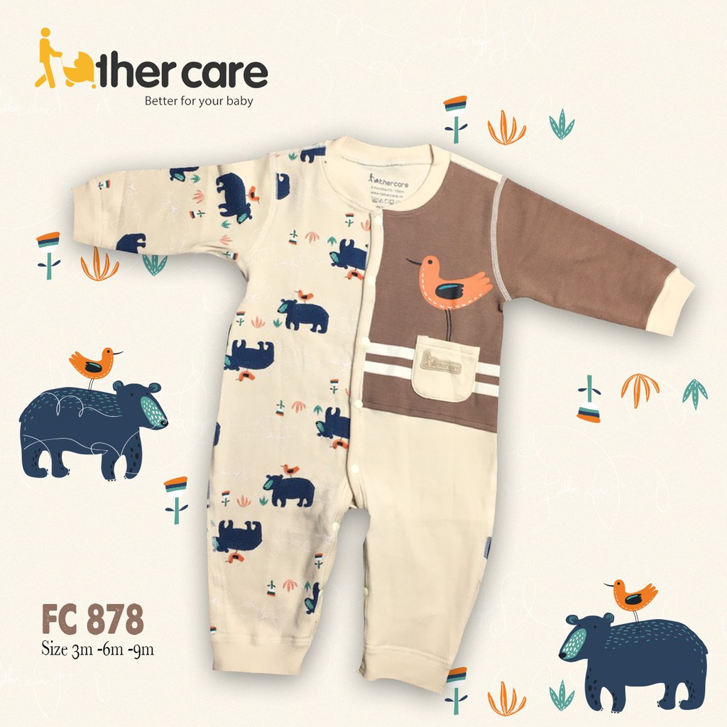 Giới thiệu Body sơ sinh Cài Giữa FatherCare Nỉ - Gấu FC878