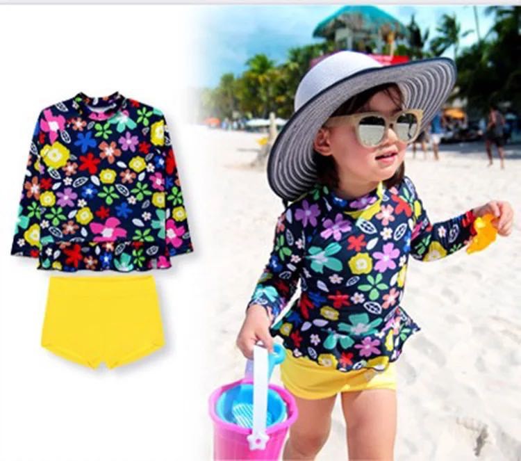 Thời Trang Trẻ Em > Bé gái | 3 tháng-4 tuổi > Đồ bơi || Bộ bơi dài tay áo hoa quần vàng ❤️ FREESHIP ❤️ Bộ bơi dài tay áo hoa quần vàng cho bé